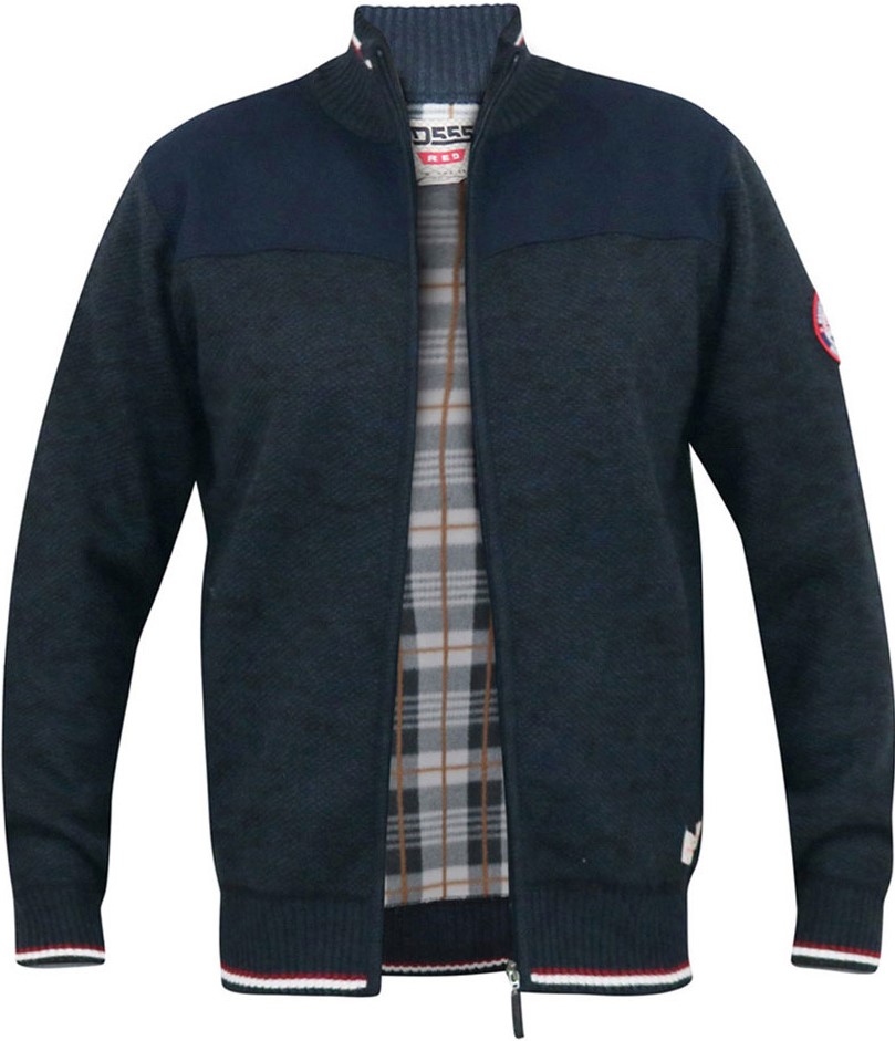 Przewodnik po rozmiarach - D555 ABERDARE Knitted Zip Through Sweater With Bonded Check Lining Navy Marl