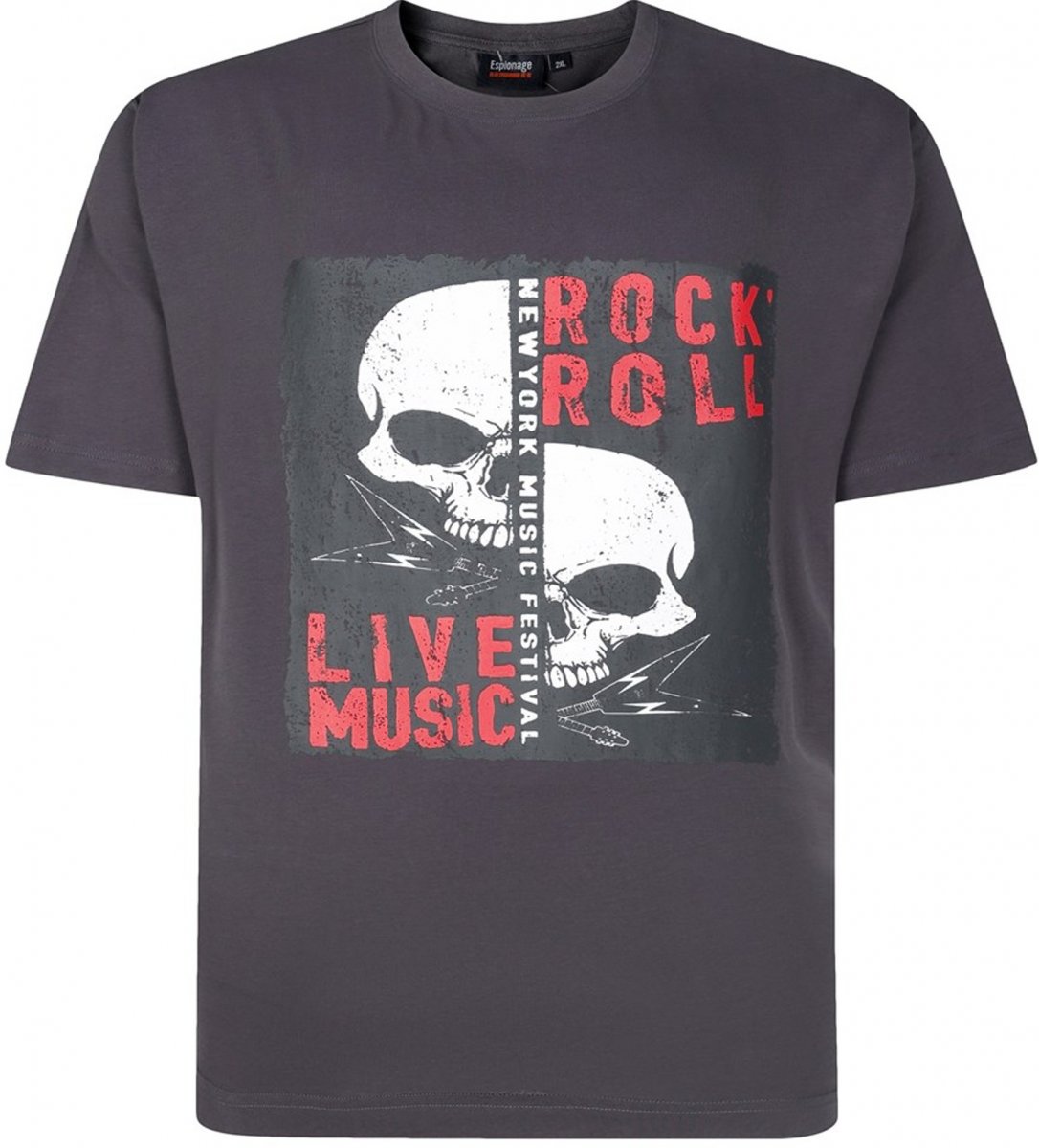 Przewodnik po rozmiarach - Espionage T437 Rock N' Roll Printed T-Shirt Charcoal