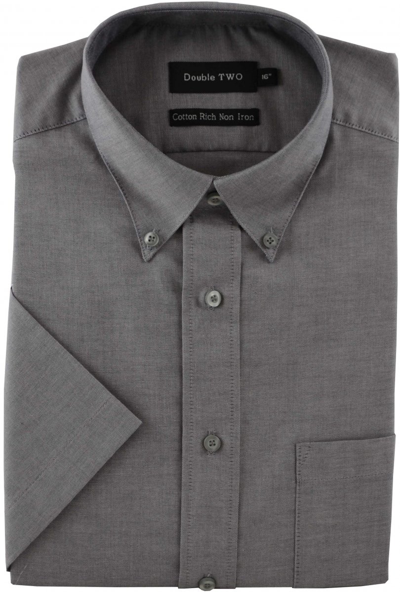 Double TWO Non-Iron Oxford Short Sleeve Grey