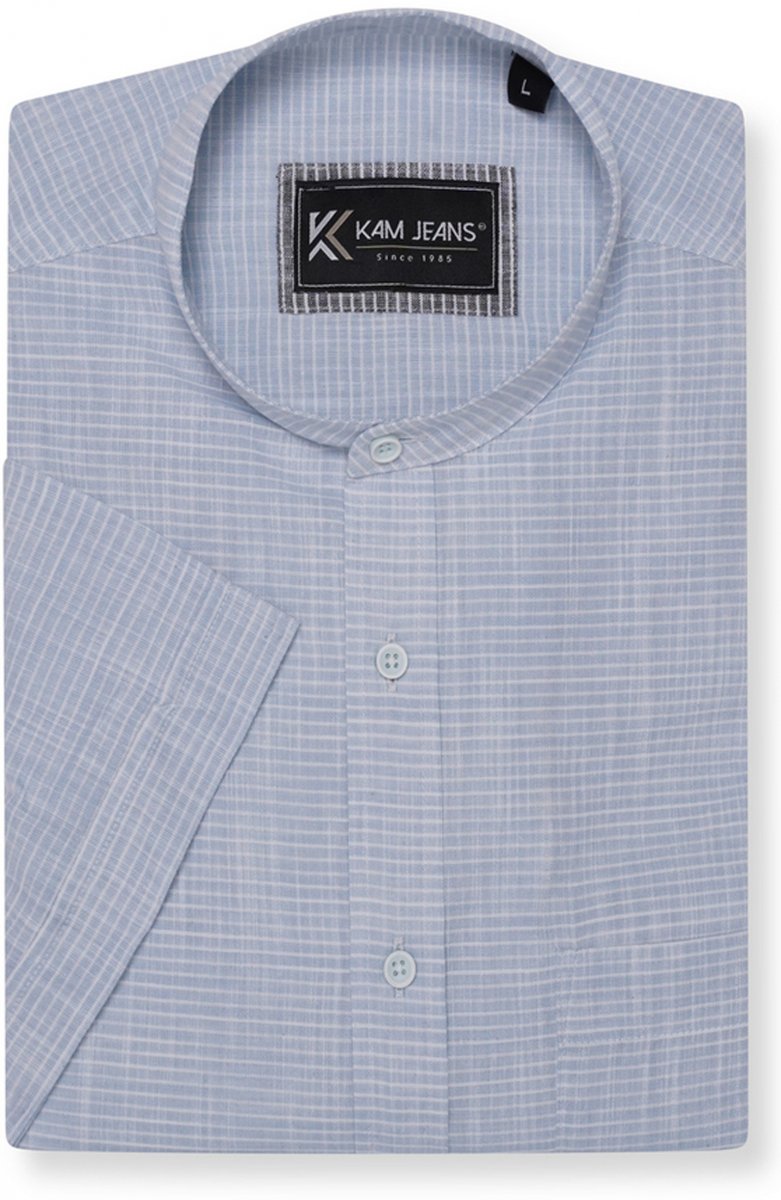 Przewodnik po rozmiarach - Kam Jeans 6334 Striped Grandad Short Sleeve Shirt Blue