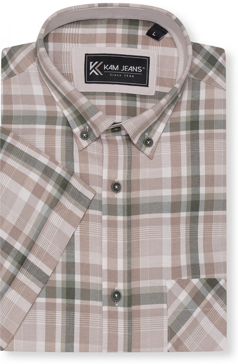 Przewodnik po rozmiarach - Kam Jeans 6339 Checked Short Sleeve Shirt Beige