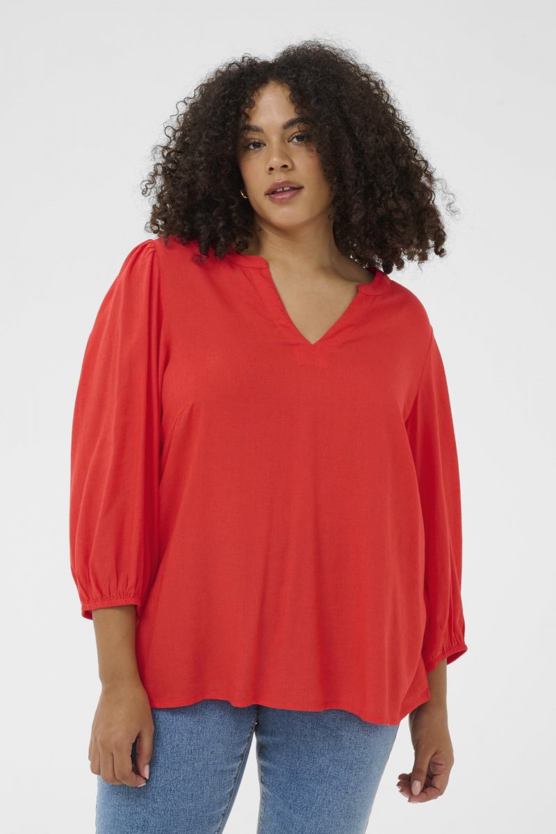 BluzkaDostępne w rozmiarach 42–54Od marki Kaffe CurveMateriał: 70 % wiskoza (LivaEco™), 30 % lenKlasyczny krójKolor jest CzerwonyKliknij tutaj, aby wyświetlić przewodnik po rozmiarach