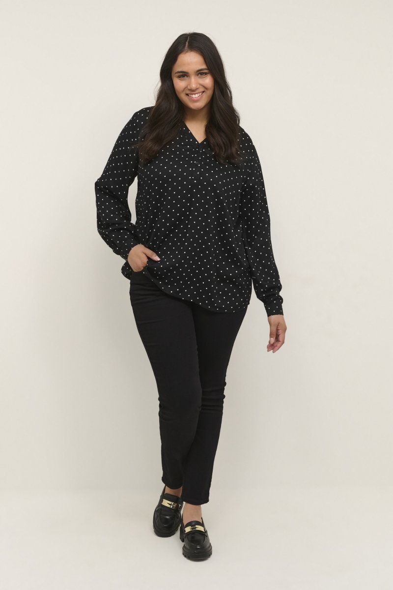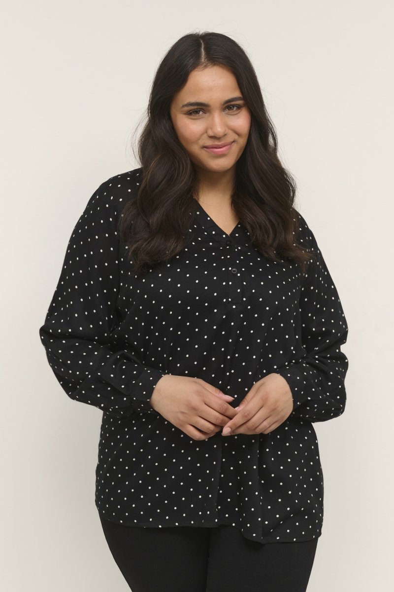 BluzkaDostępne w rozmiarach 42–54Od marki Kaffe CurveWykonano w 100% z wiskozy (LENZING™ ECOVERO™)Klasyczny krójKolor jest czarnyKliknij tutaj, aby wyświetlić przewodnik po rozmiarach