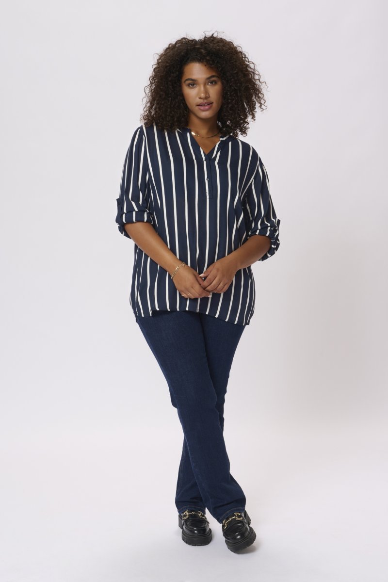 BluzkaDostępne w rozmiarach 42–56Od marki Kaffe CurveWykonano w 100% z wiskozy (LENZING™ ECOVERO™)Klasyczny krójKolor jest GranatowyKliknij tutaj, aby wyświetlić przewodnik po rozmiarach
