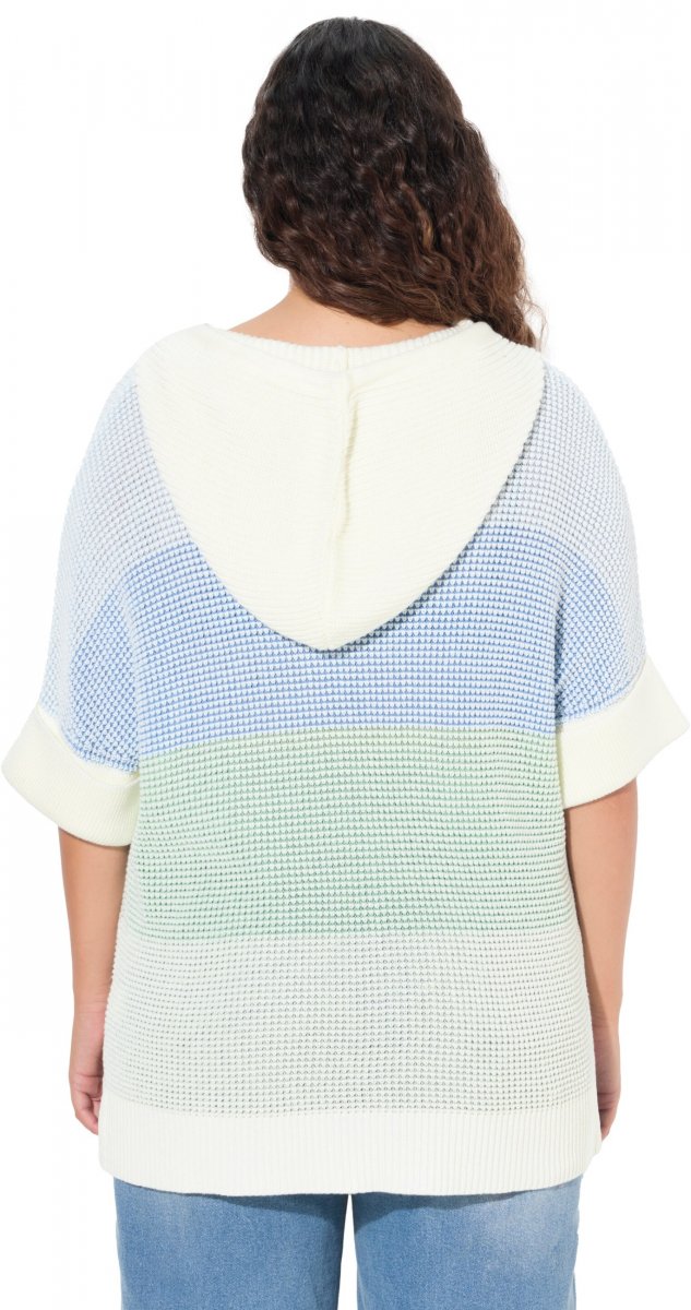Przewodnik po rozmiarach - Ulla Popken Block Stripe Hooded Short Sleeve Sweater Mint Green