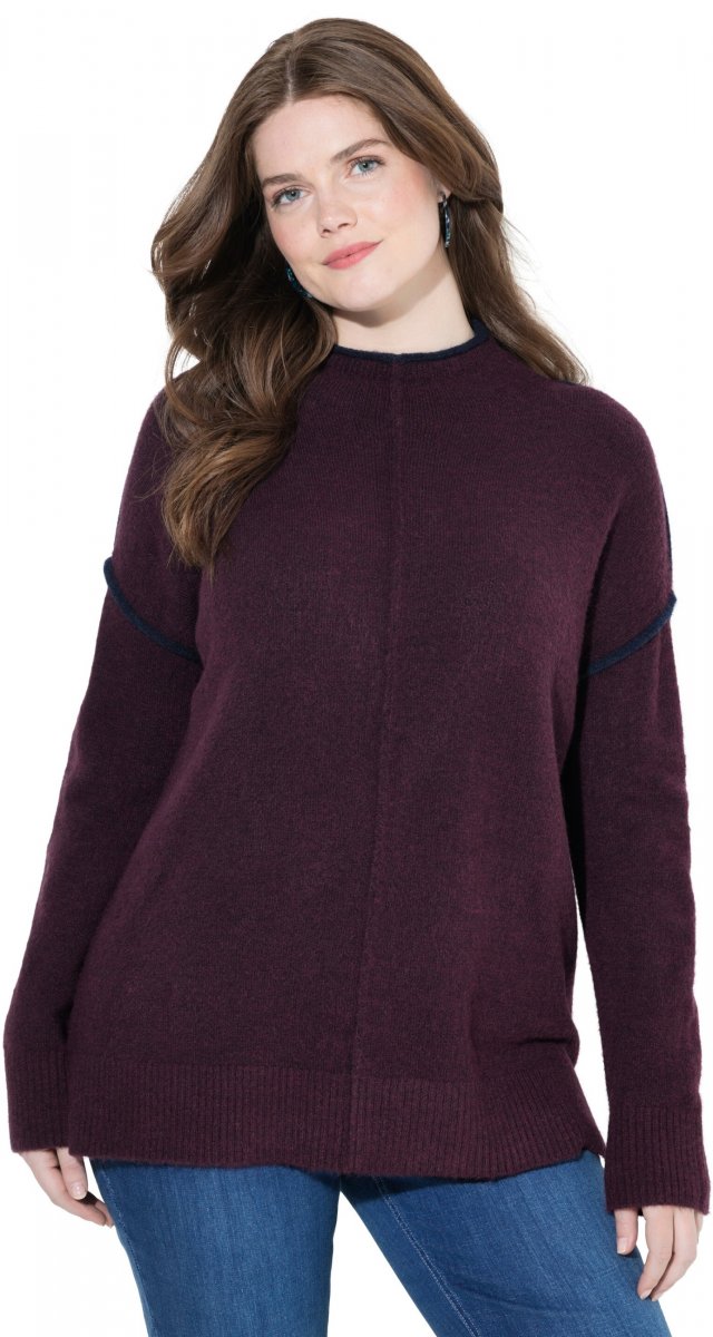 Przewodnik po rozmiarach - Ulla Popken Contrast Trim Long Sleeve Sweater Dark Ruby