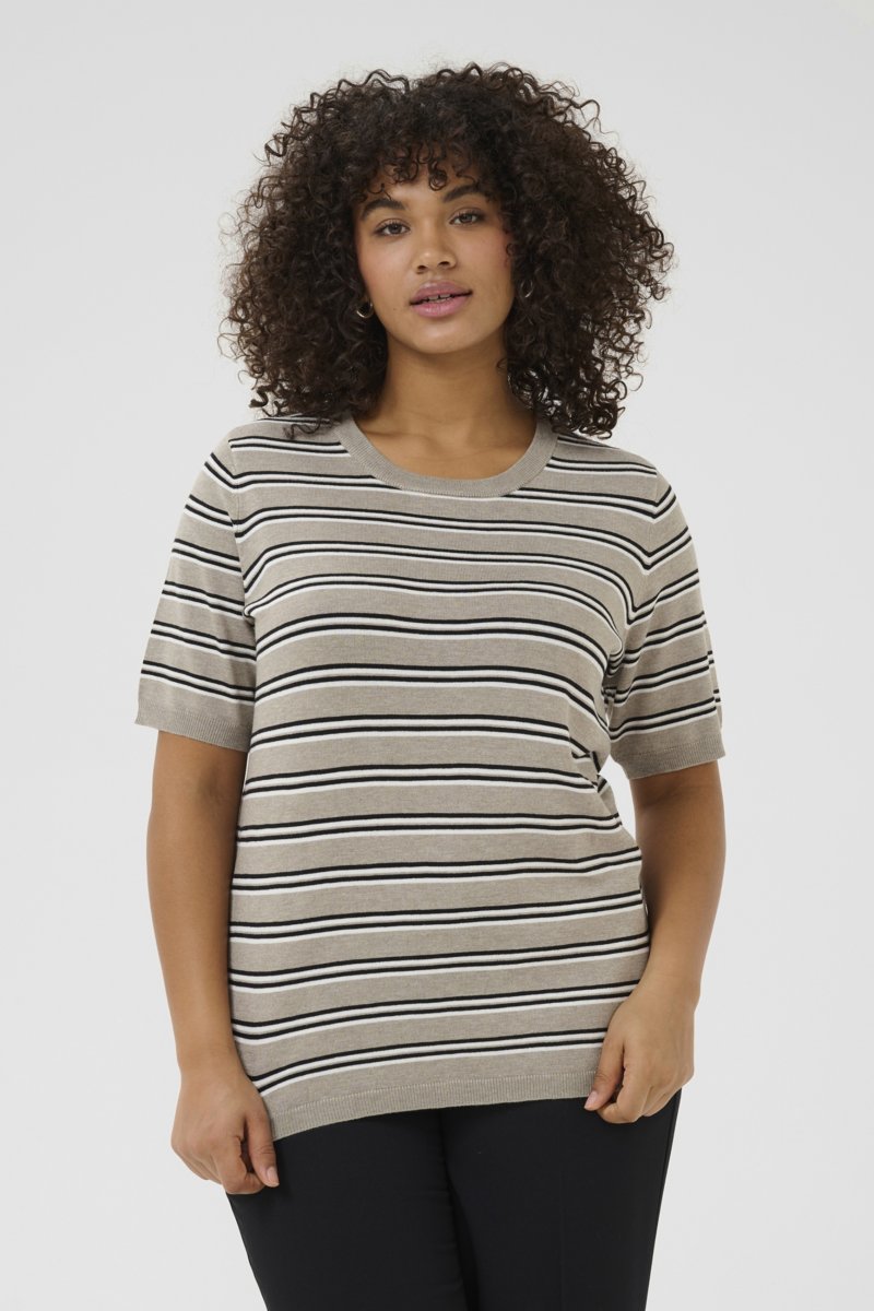 Przewodnik po rozmiarach - Kaffe Curve Lizzy Sweter w paski Beżowy/Czarny