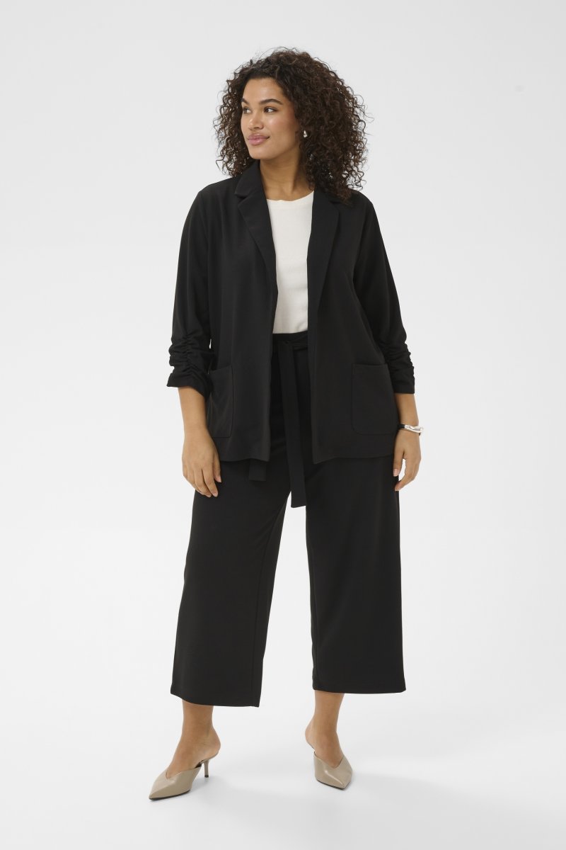 BlezerDostępne w rozmiarach S–XLOd marki Kaffe CurveMateriał: 50 % poliester (z recyklingu), 45 % poliester, 5 % elastanLuźny krójKolor jest czarnyKliknij tutaj, aby wyświetlić przewodnik po rozmiarach