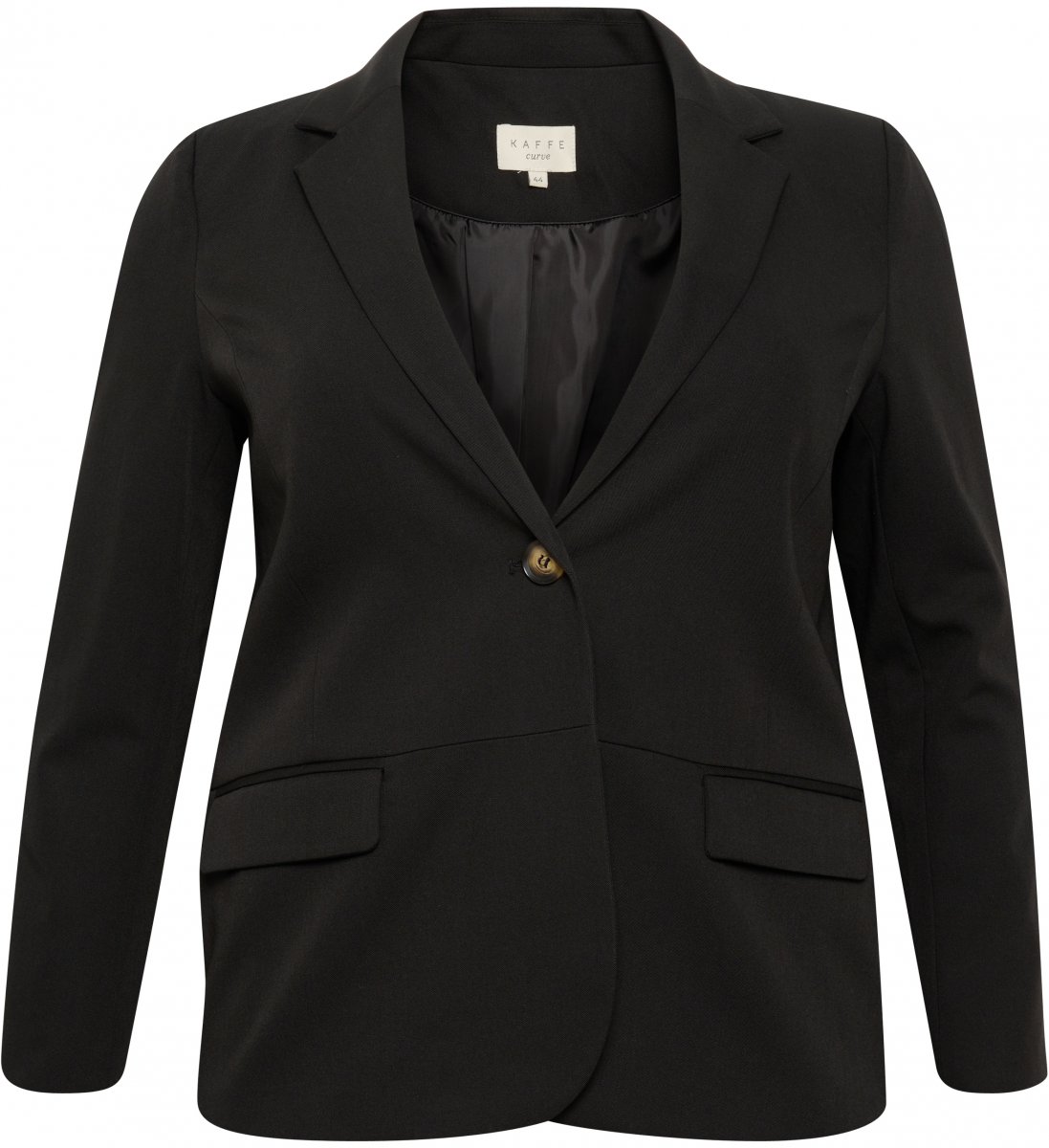 BlezerDostępne w rozmiarach 42–54Od marki Kaffe CurveWykonano z 77% poliestru (z recyklingu), 18% wiskozy, 5% elastanuDopasowany krójKolor jest czarnyKliknij tutaj, aby wyświetlić przewodnik po rozmiarach